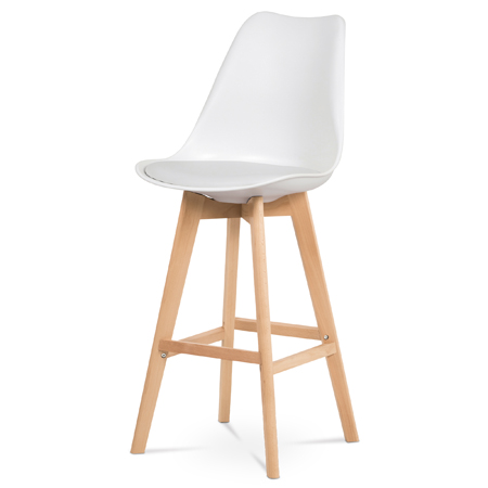 Popis produktu Barová židle, bílá plast+ekokůže, nohy masiv buk