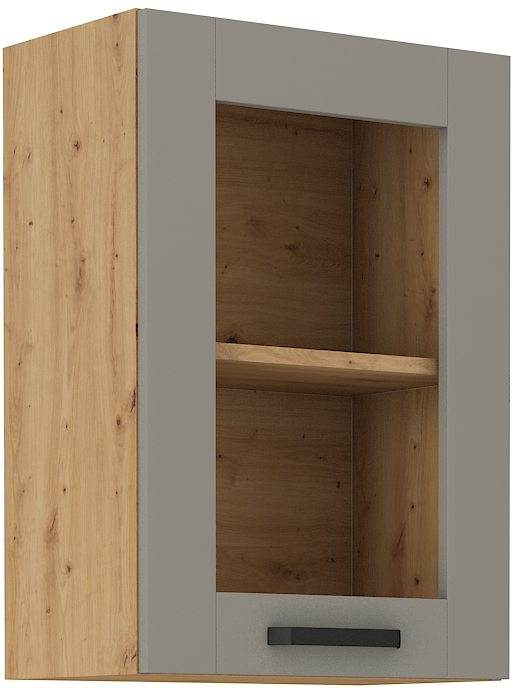 Popis produktu Horní prosklená skříňka Luna 40 GS-72 1F Barva korpusu: Clay Grey + Dub artisan
