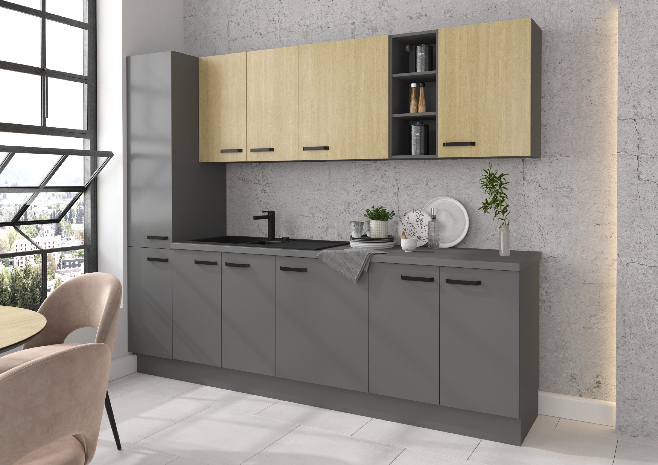 Popis produktu Kuchyňská linka 260 cm Scandi / Nessa 1 Barva korpusu: Antracit + Jodelka Scandi